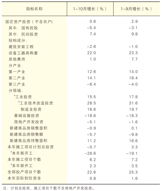 2025年1-10月固定资产投资