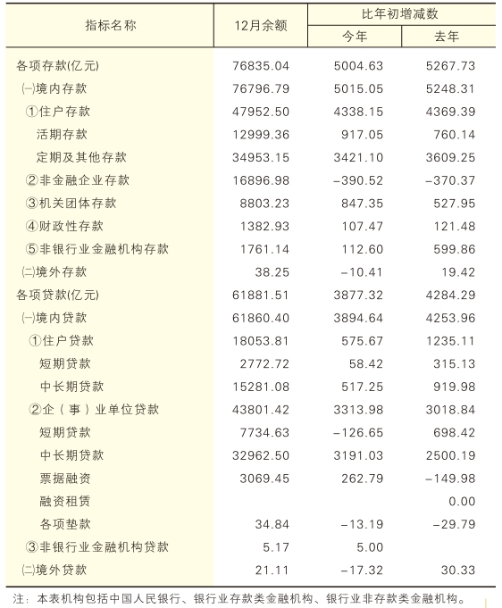 2025年12月金融机构信贷收支