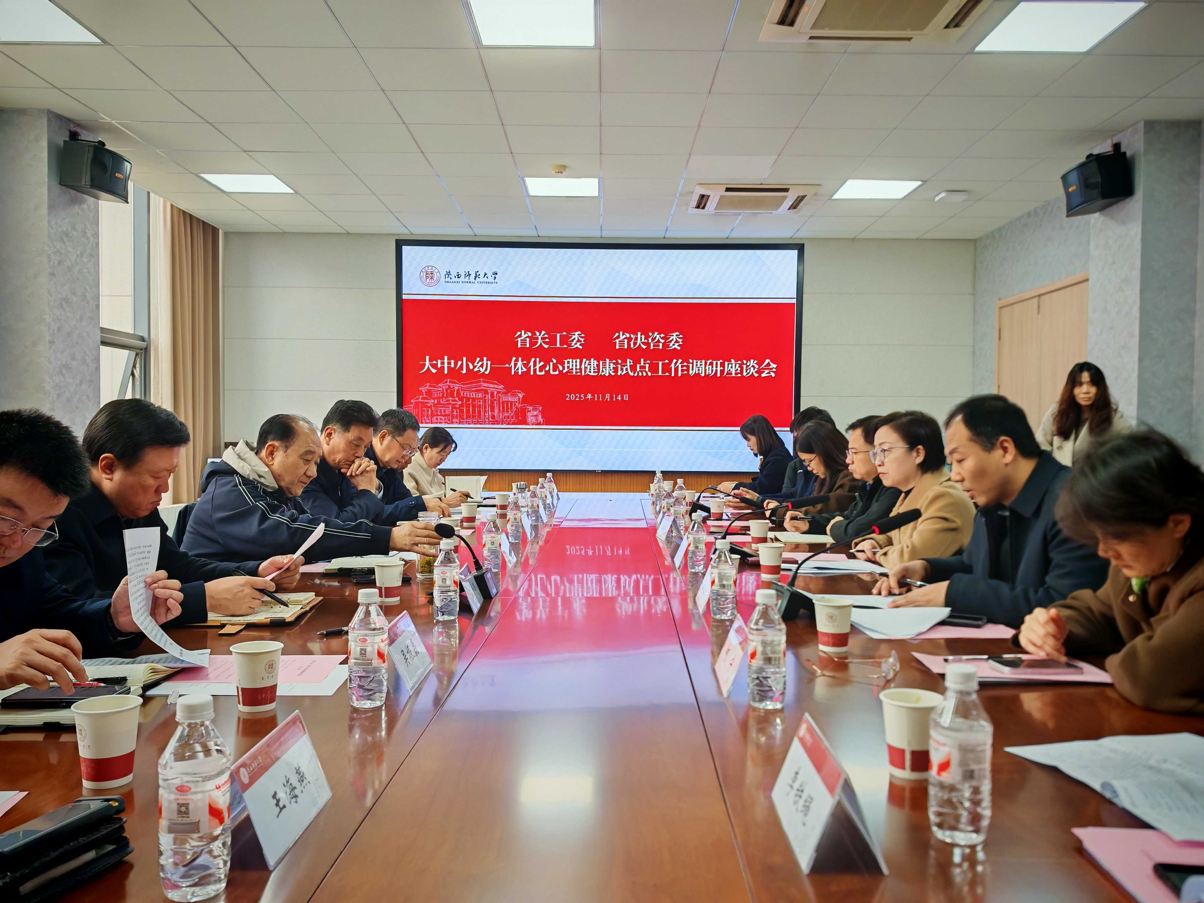 2025年11月13日到14日,戴征社主任和省关心下一代工作委员会郑小明主任带队,先后到西安文理学院、西安培华学院、陕西师范大学,调研三所大学的“大中小幼一体化心理健康”试点工作。省决策咨询委员刘岭、赵昶葆等参加。