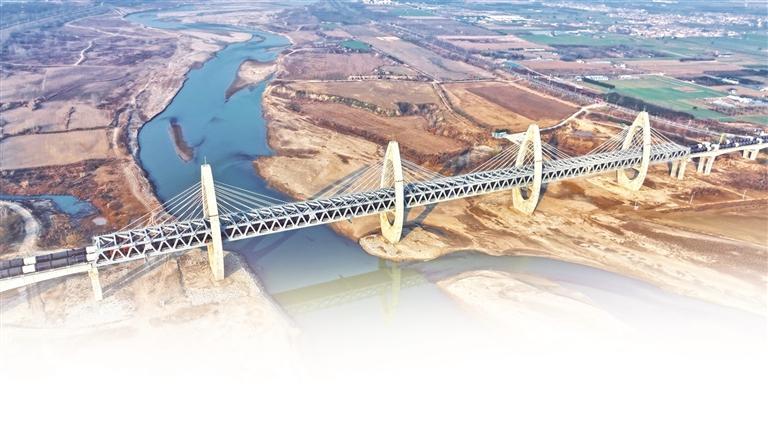 12月19日11时,在咸阳市武功县小村镇柳林村,引汉济渭二期工程北干线渭河管桥的最后一节压力钢管吊装到位。