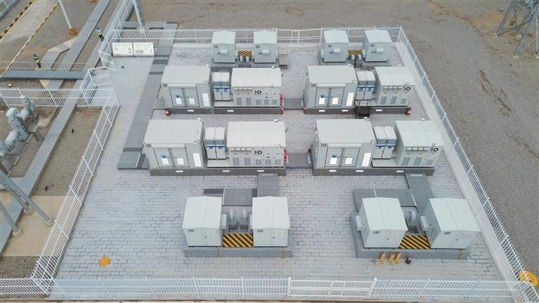 观摩会上,来自政府、高校、电网企业及能源行业的代表前往榆能杨伙盘煤电公司生产现场,实地观摩了安装在升压站区域的飞轮储能装置。