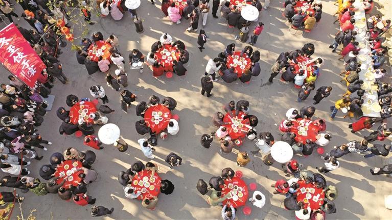 12月21日,冬至,在礼泉县烟霞镇袁家村,第二届千人饺子宴开席。来自五湖四海的游客和当地村民围坐在一起,在饺子的香味中感受传统节日的魅力。(记者:琚鹏飞