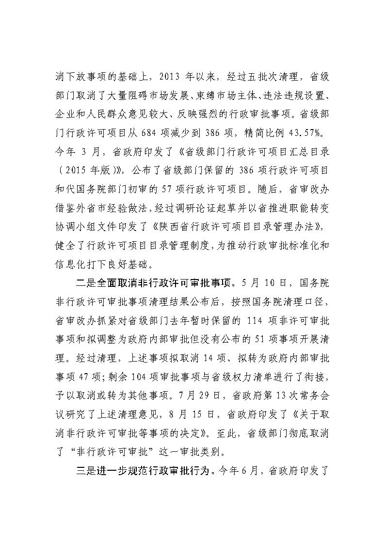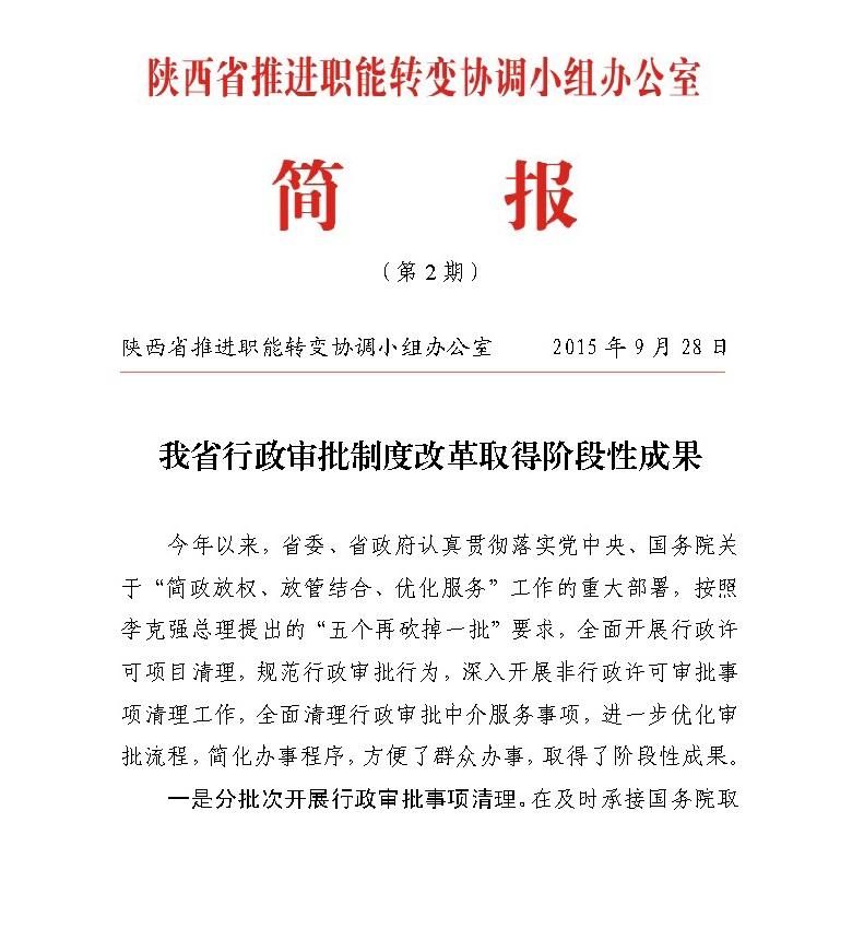 陕西省推进职能转变协调小组办公室简报