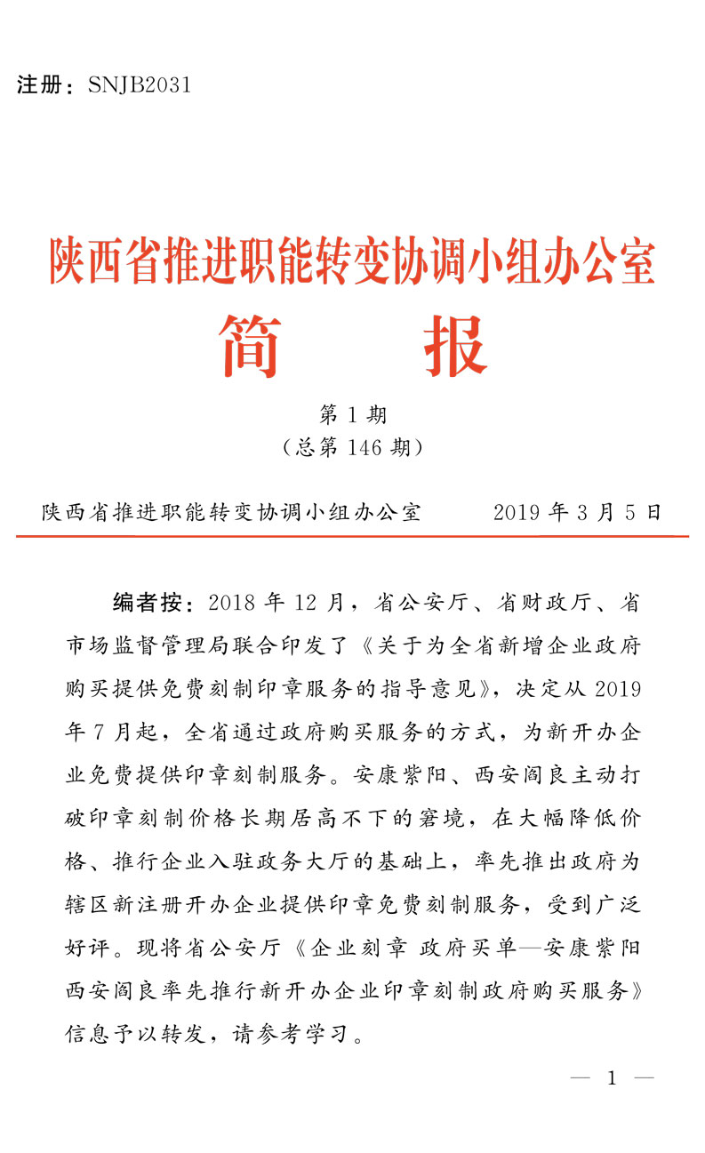 陕西省推进职能转变协调小组办公室简报