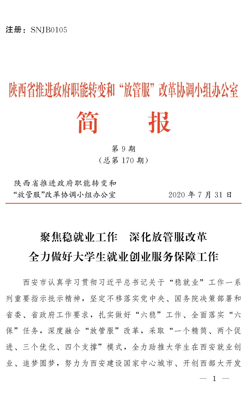 陕西省推进政府职能转变和“放管服”改革协调小组办公室简报