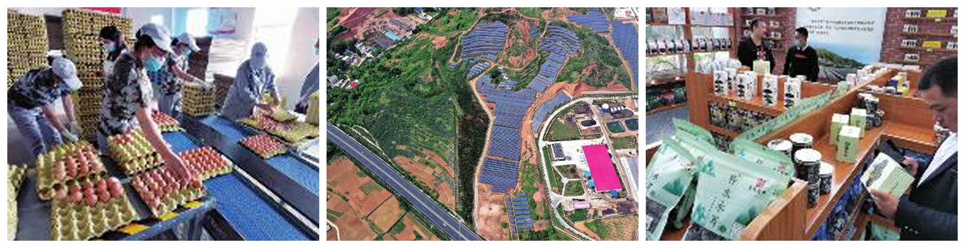 当天下午,采访团前往山阳县高坝店镇,参观了金鸡扶贫产业园。总投资5.13亿元的金鸡产业扶贫是国家重点推广的产业扶贫工程,也是贫困地区精准扶贫、精准脱贫的重大资产收益项目。该项目2016年在山阳落地,是陕西省唯一的一个试点县项目。据山阳金鸡项目工程建设管理处负责人毛仪惠介绍,目前,已构建以生态养殖、食品加工、清洁能源等为主的全循环产业链,形成上游蛋鸡产业、中游肉鸡产品开发、下游副产品综合利用和污水粪便沼气利用的现代农光互补生态产业园区,年产值2.6亿元,利税8415万元。据了解,该项目带动全县无劳动能力贫困户6719户和239个村集体经济组织参与收益分红,开发村级公益性岗位2384个,提高了贫困群众参与度,加强了村级公共服务管理。在产业园北区,正在工作的陈红艳告诉华商报记者,她是2018年来到产业园,“以前就是在家带孩子,偶尔干干农活,也没什么收入。现在有工作了,收入也增加了。”