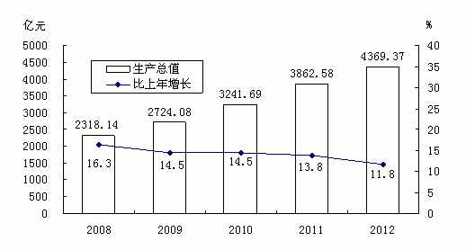 图1 2008—2012年生产总值及其增长速度