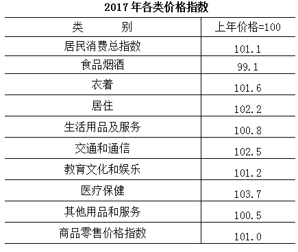 全年居民消费价格上涨1.1%,其中,食品烟酒价格下降0.9%。商品零售价格上涨1.0%。