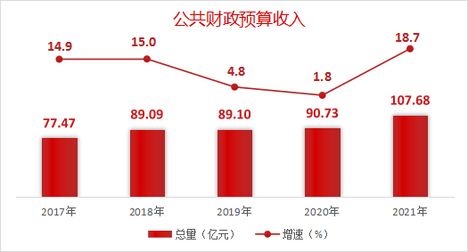 全市公共财政一般预算收入107.68亿元,较上年同口径增长18.7%。其中,税收收入85.21亿元,增长20.9%;非税收入22.47亿元,增长11.0%。税收收入占公共财政预算收入的79.1%。全市财政支出428.72亿元,增长3.6%。