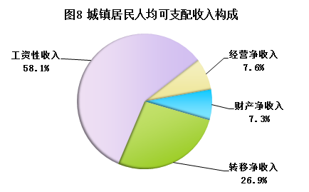 全年城镇居民人均可支配收入36098元,比上年增加2779元,增长8.3%。其中,工资性收入20983元,增长8.4%;经营净收入2760元,增长6.9%;财产净收入2644元,增长7.9%;转移净收入9711元,增长8.7%。城镇居民人均生活消费支出23514元,比上年增加1548元,增长7.0%。