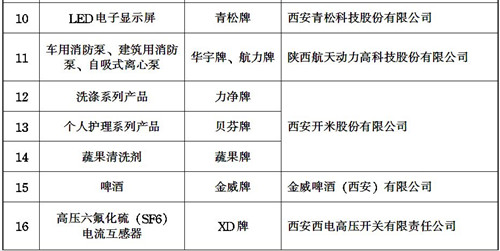 2012年陕西省名牌产品名单
