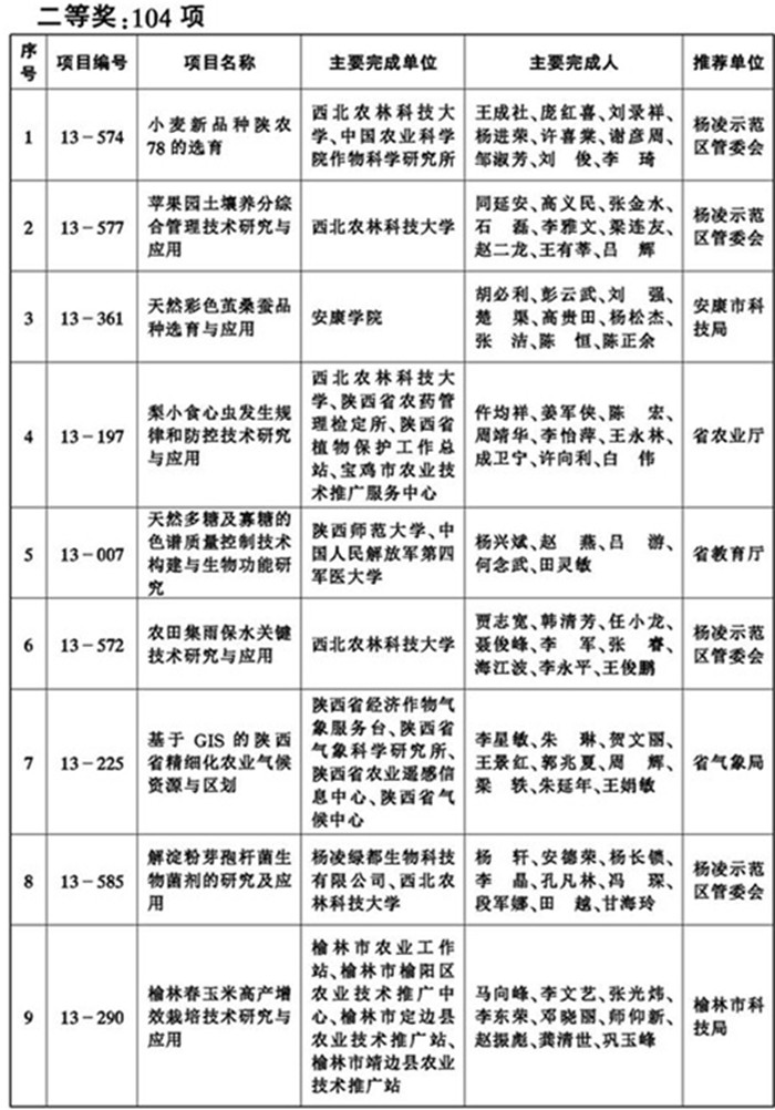 附件:2013年度陕西省科学技术奖获奖项目名单